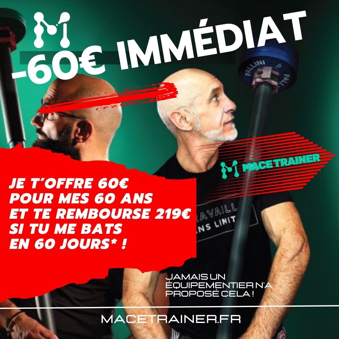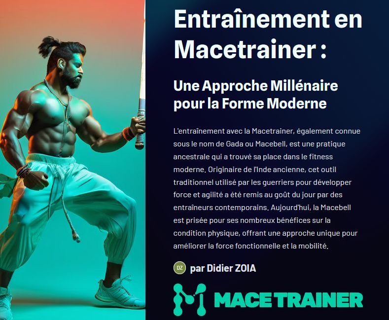 La Macetrainer, est modernisée et réinventée par Didier ZOIA Multiple Recordman de France et Recordman du Monde en Biathlon Macebell pro 15 kg 761 répétitions.
